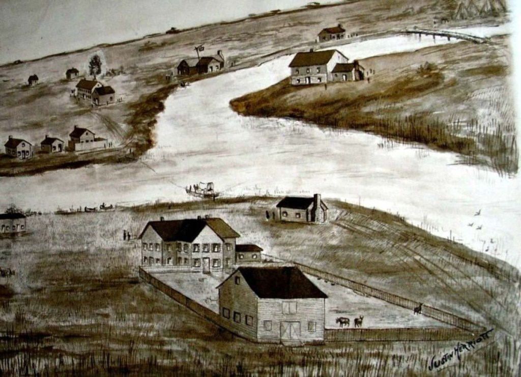 Upon their arrival, Captain John Whistler immediately began preparations for the stockade that would shelter and protect his troops and family during the construction period. Mrs. Whistler noted that when they disembarked the canoe, “There were then here…. but four rude huts, or traders’ cabins, occupied by white men, Canadian French, with Indian wives.”