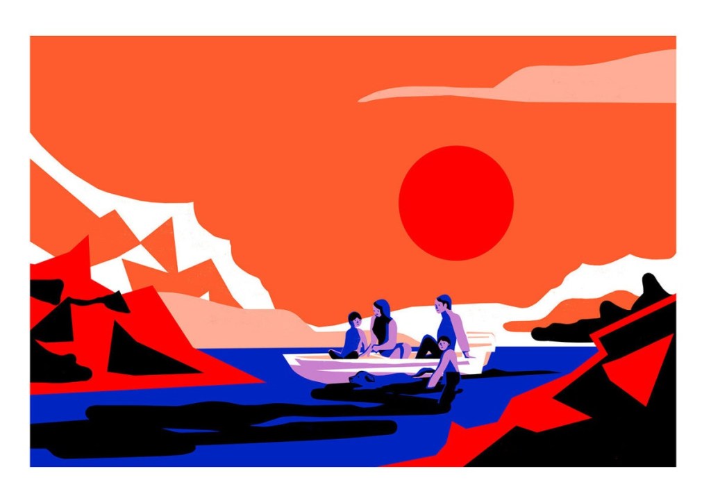 Watching the rocket disappear behind them, the family moves on down the river. The younger boys ask, “How far are we going? How long until we get there?” The same questions asked by children everywhere at the outset of a family road trip, but this is not a “normal” family vacation, and the father responds that they are traveling, “a million years.”