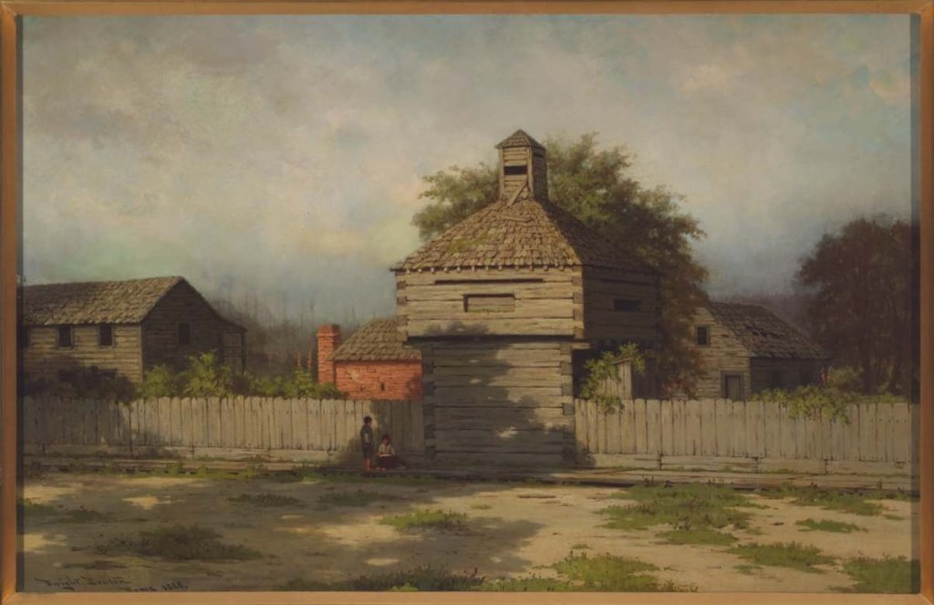 Large picket fences were raised to enclose the garrison, accessible only by the gates which were installed on the north and south sides of the fort. To the south and past the parade ground, the company gardens flourished, adorned with fruit trees and currant bushes that provided fresh produce for the militia, and the ability to use what was left by canning or preparing fruit butters for the long winter months. To the west of the river stood the garrison’s root houses, filled with supplies and foodstuffs. Bradley’s preparations were detailed, using an economy that is said to have gone unnoticed by the government that funded the project.