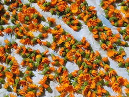 When dried, the calendula remains a colorful ornament and may be hung in the home. Dried petals may also be used to steep for tea and promoting healthy digestive and bowel function. The tea may also be used as a gargle for the mouth and throat, as its medicinal properties are known to relieve inflammation. Calendula tea is made by steeping a few teaspoons of dried petals per cup of boiling water. Leftover tea may be refrigerated.