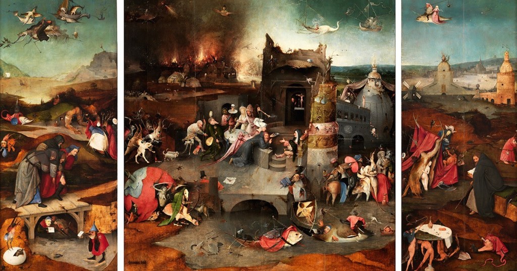 The Temptation of Saint Anthony, painted between 1505 and 1506, is another of Bosch’s triptychs. It is said that Bosch’s spiritual heroes were the saints who held true to their faith even after enduring tremendous physical and mental torture. His favorite was Saint Anthony.