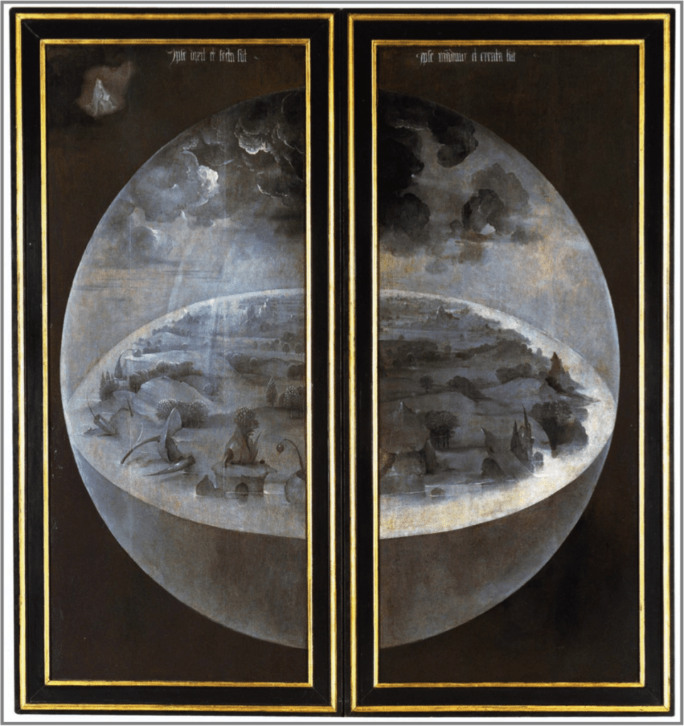 To the left of The Last Judgement, Bosch once again tells the story of the Garden of Eden. We can see its perfection, and we can see its downfall, as Adam and Eve partake of the forbidden fruit. In their defiance, they come face to face with the end of paradise, as they are cast from the garden… removed from the place where God protected them.